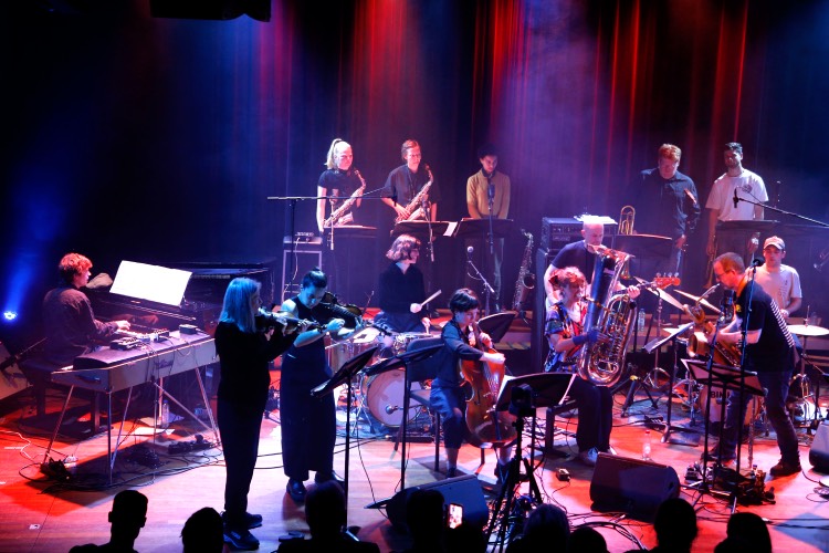 Johan Berthling op basgitaar en de eerder genoemde Gustafsson staan samen met de vanavond afwezige drummer Andreas Werliin aan de basis van het trio Fire!. Het orkest is ontegenzeggelijk een verlengstuk daarvan. Het concert begint met een stuk wat volledig geïmproviseerd lijkt. Strijkers, zang, blazers, iedereen heeft een aandeel. Gustafsson dirigeert, als een rots in een waanzinnige branding. Gestaag krijgt het idee van de dirigent vorm. Een combinatie van freejazz, neo-klassiek en rock.