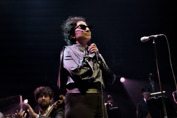 Arooj Atab kwam in een zee van rood licht het podium op, om met het Metropole Orkest nummers van haar voorlaatste album Love in Exile te zingen. Dat album met een kleine bezetting waarin pianist Vijay Iyer een prachtrol speelt, laat Arooj horen als een kwetsbare vrouw die met haar diepe stem indringende poëzie in de klassieke Pakistaanse taal Urdu zingt. Met het Metropole Orkest met zijn enorme strijkerssectie en indrukwekkende blazers, klonk dat nu anders.