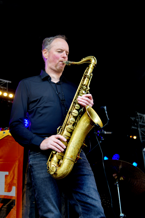 Jan van Duikeren’s Fingerprint was een van de drie groepen die het Hoofdpodium bevolkten. Het kwintet vat zo’n beetje het gehele concept van IJssel Jazz samen met zijn repertoire dat is gestoeld op nu-jazz, funk, soul en gospel.